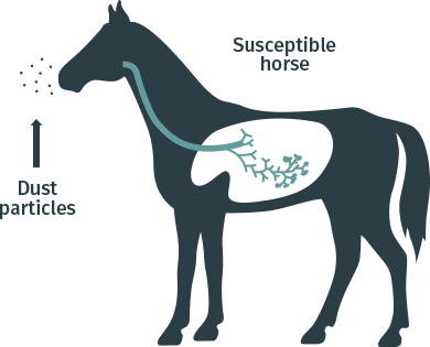 In a word: dust. The feed, the bedding, the stabling, the cleaning, and the sweeping—the very care you provide is often a source of dust particles and endotoxins, so small that you can’t see them.