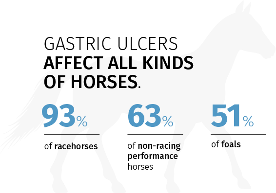 Although common in performance horses, gastric ulcers can be a problem for all types of horses. Depending on a horse’s age, breed, and activity, the rate of equine ulcers may rise to 93%.2